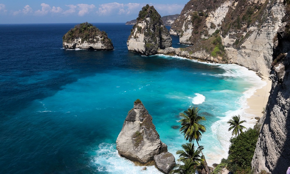 Diamond Beach en Nusa Penida, Indonesia, es una playa de belleza asombrosa que parece sacada de un cuadro. Ubicada bajo imponentes acantilados kársticos, su acceso era históricamente muy difícil, lo que contribuía a su misterio y encanto.